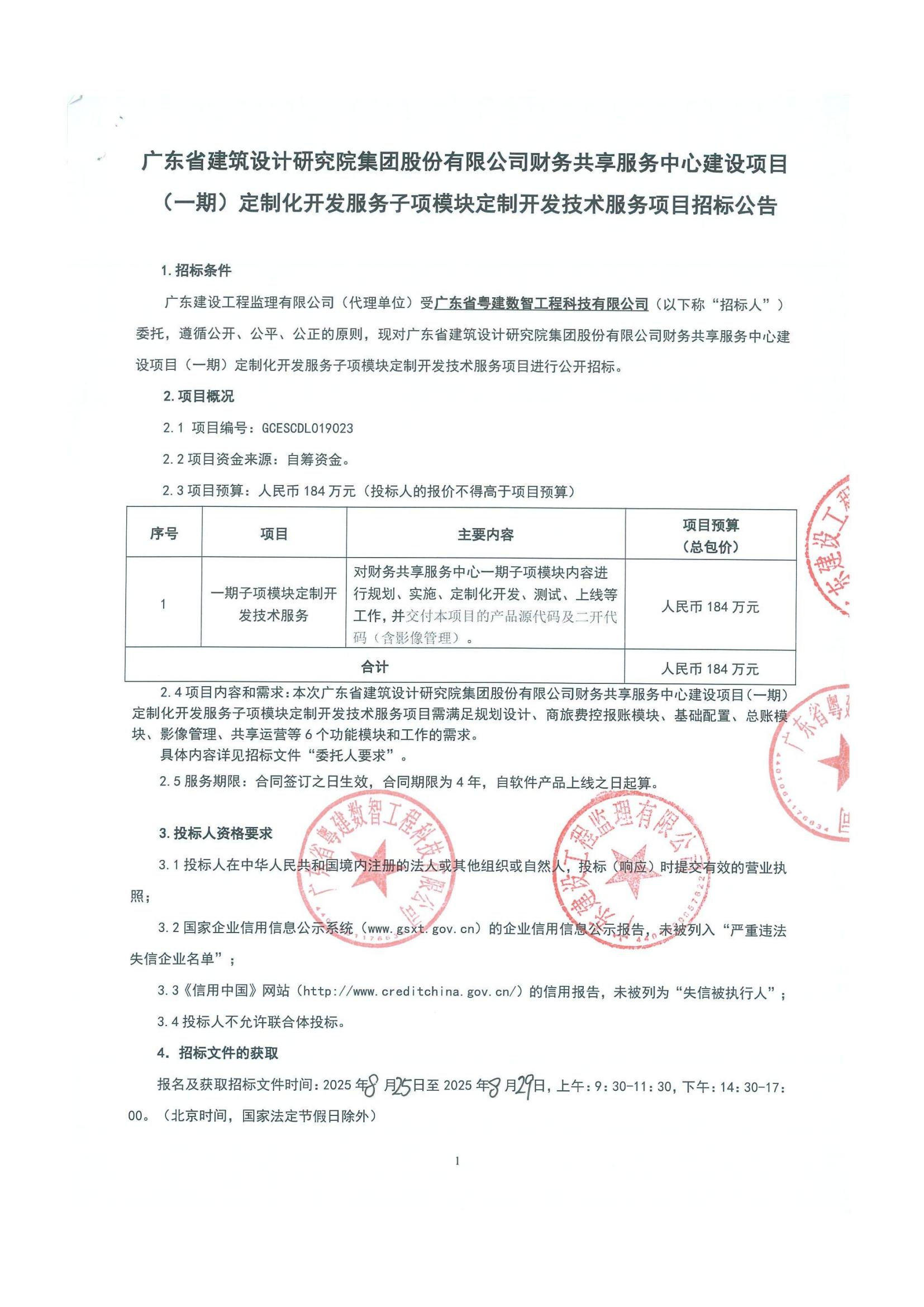 上一篇:廣東省建筑設(shè)計(jì)研究院集團(tuán)股份有限公司財(cái)務(wù)共享服務(wù)中心建設(shè)項(xiàng)目(一期)定制化開發(fā)服務(wù)子項(xiàng)模塊定制開發(fā)技術(shù)服務(wù)項(xiàng)目澄清公告