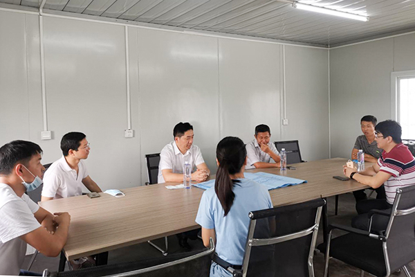 到達(dá)項(xiàng)目部后,李巍副院長(zhǎng)冒雨前往施工現(xiàn)場(chǎng),實(shí)地查看現(xiàn)場(chǎng)管理、安全保障措施,細(xì)心詢問(wèn)駐守現(xiàn)場(chǎng)同事的生活及工作情況,并聽(tīng)取了郭典塔總經(jīng)理關(guān)于項(xiàng)目進(jìn)展、人員安排和收款情況的介紹。